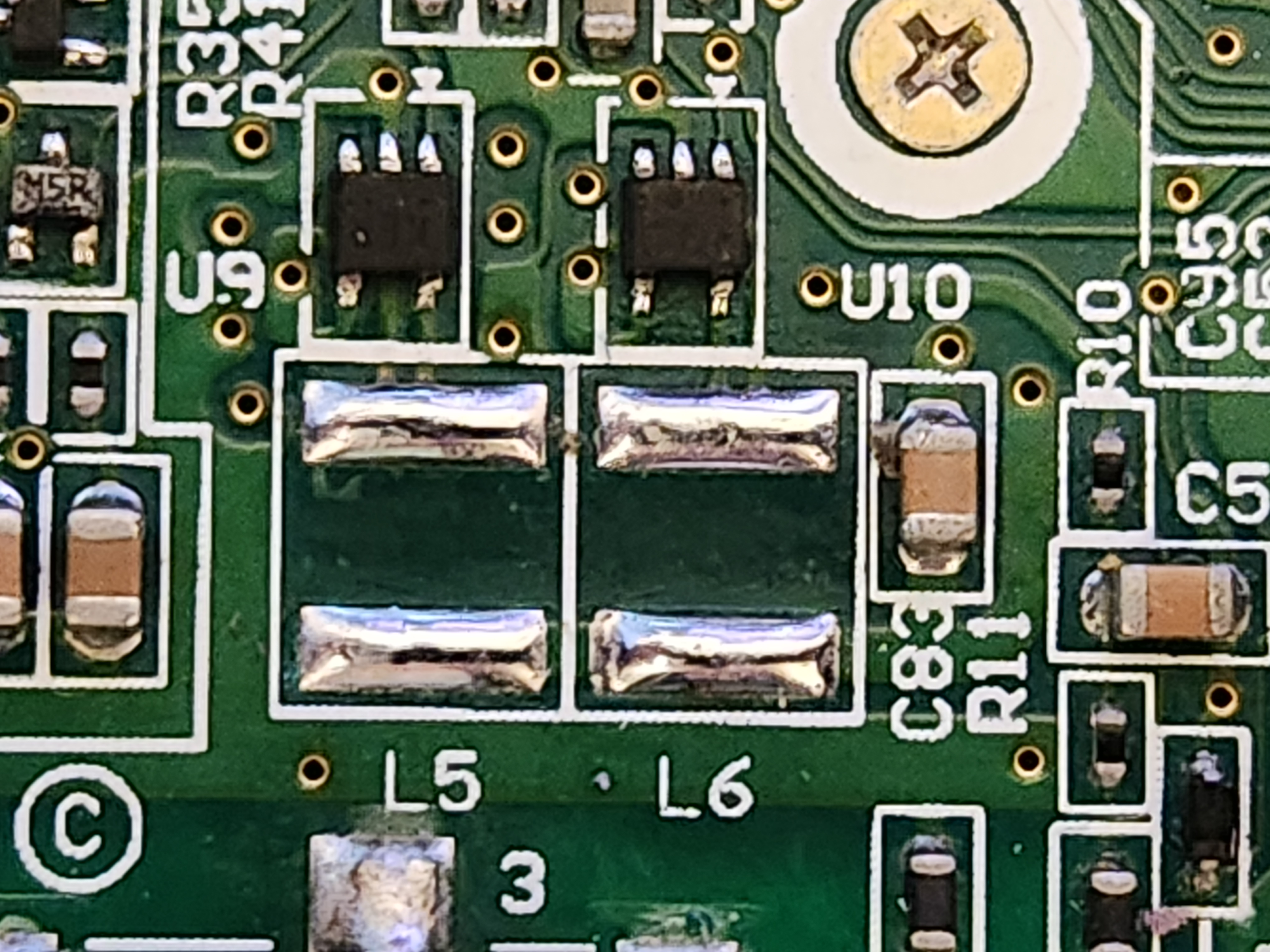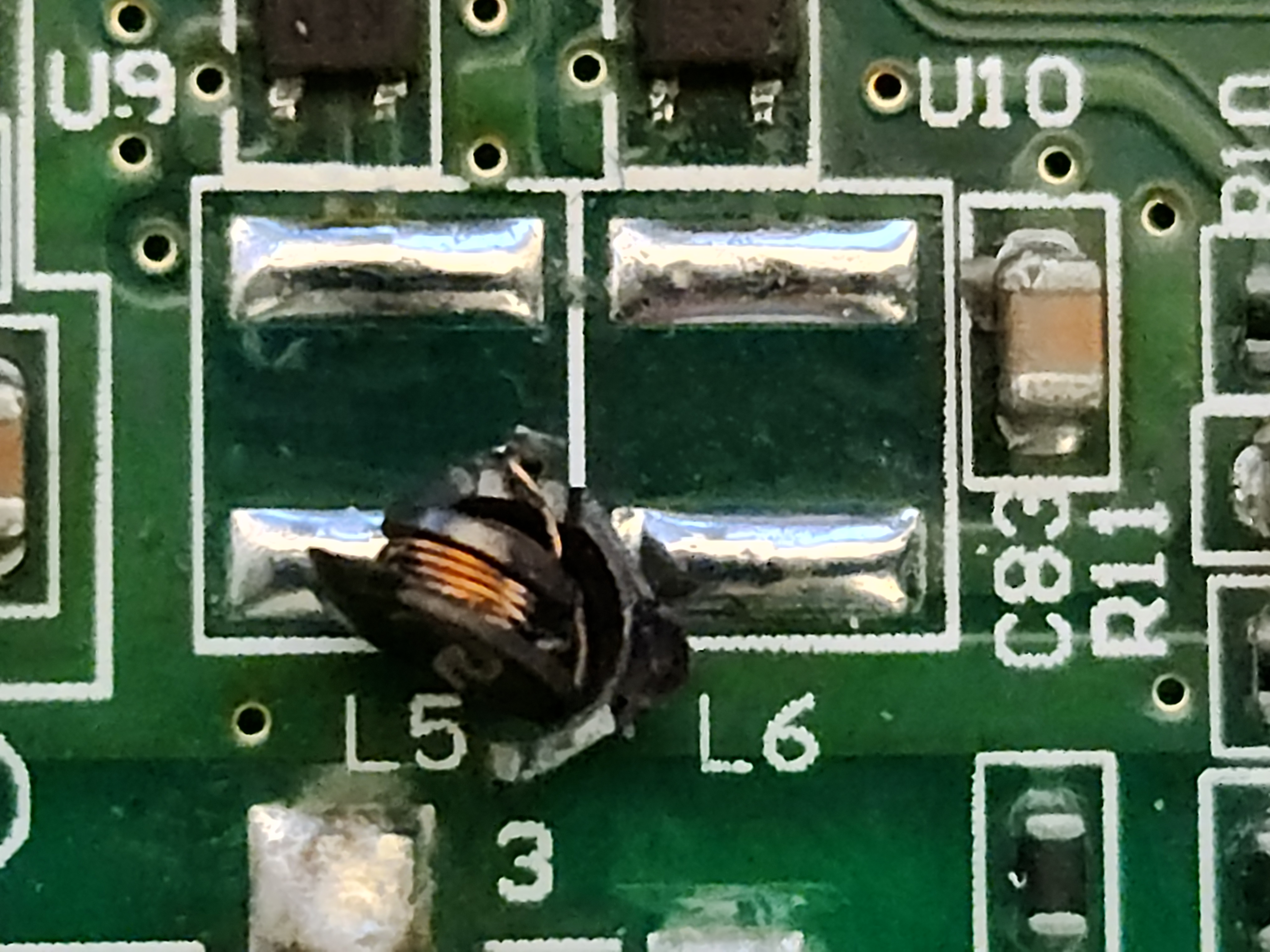 Repair the broken Inductors L5 L6, the pictures are from after I removed the two bad inductors and tinning the pads